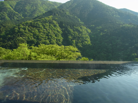 目の前の自然と一体になった気分で入浴できる露天風呂。
